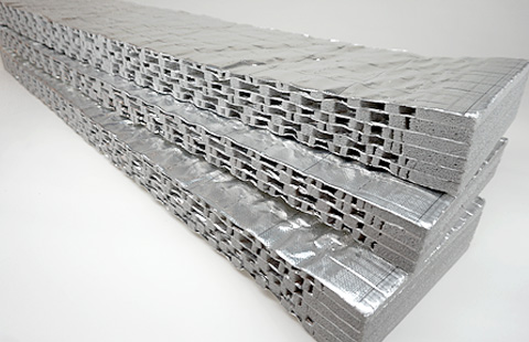 그물망 형태의 폴리에틸렌폼을 합지하여 알루미늄필름 사이의 열전도를 최소화 합니다.